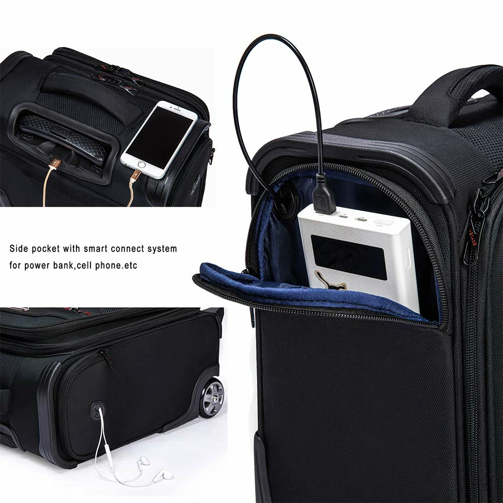 - ✈[INTELLIGENT PACKING]:Built-in port lets you power up your phone, tablet or any other USB accessory on the go.Built in laptop or tablet sleeves in front pocket.One front pocket for easy grab items;Roomy main compartment and organizer pockets for accessories, electronics and clothes.Side pockets for water bottle or small accessories