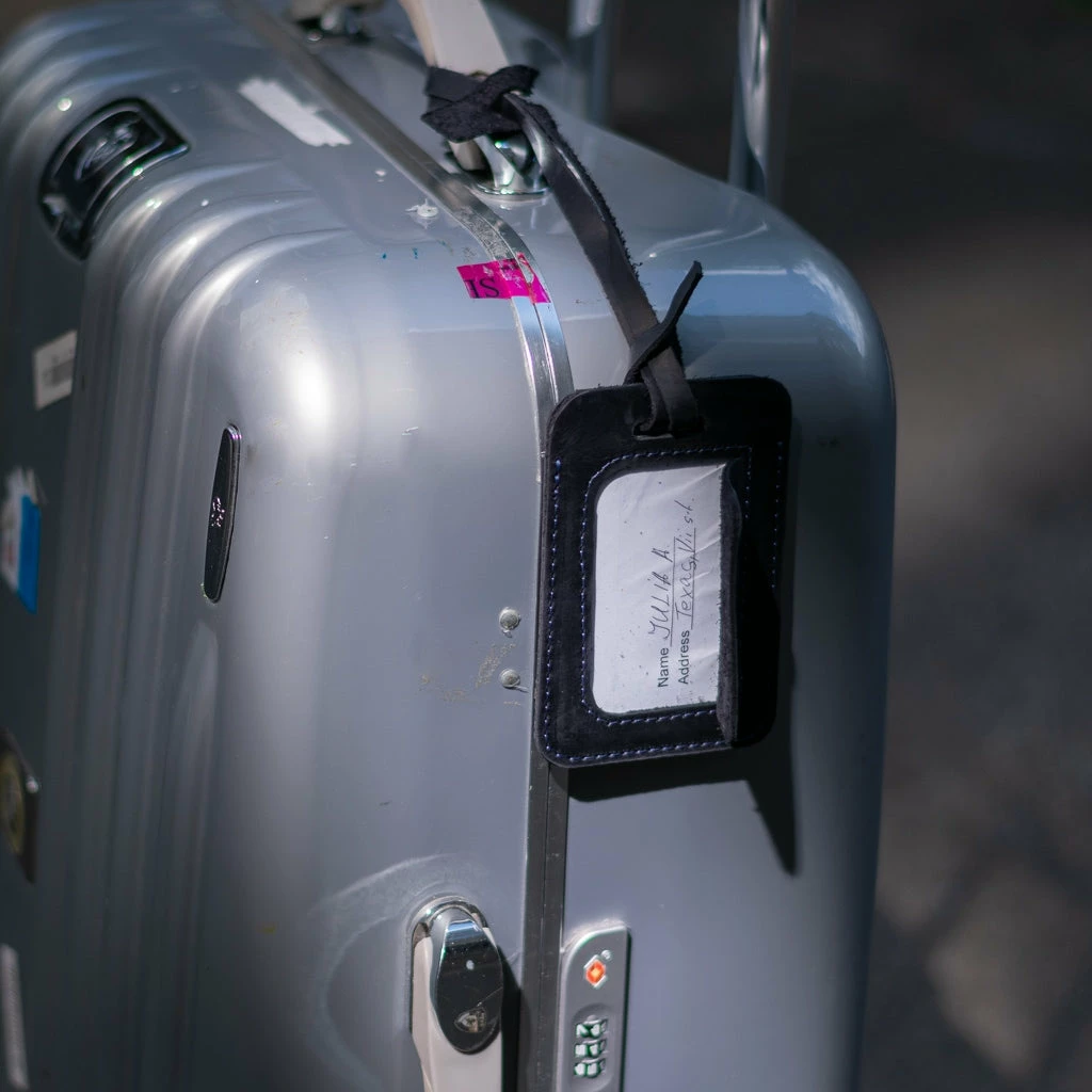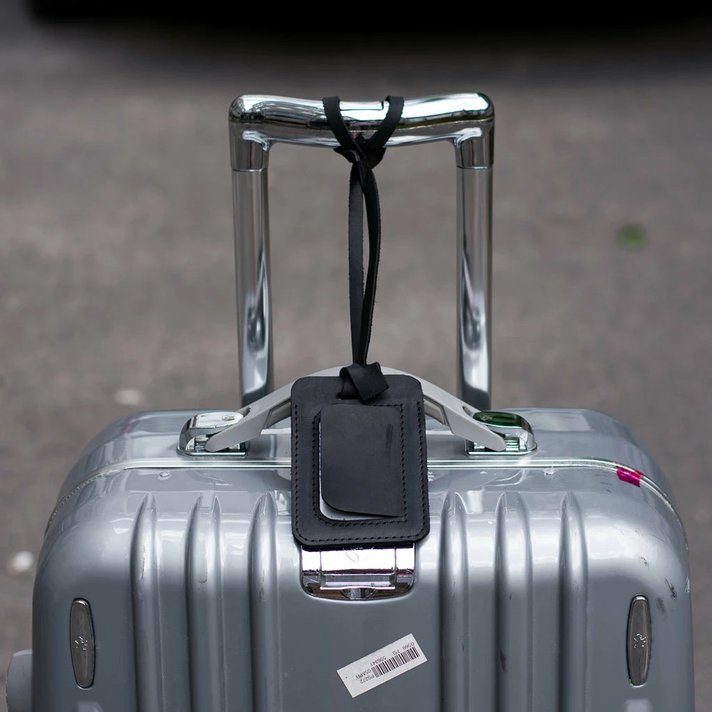 This luggage tag is a must-have for any traveler. Handcrafted from Crazy Horse leather.