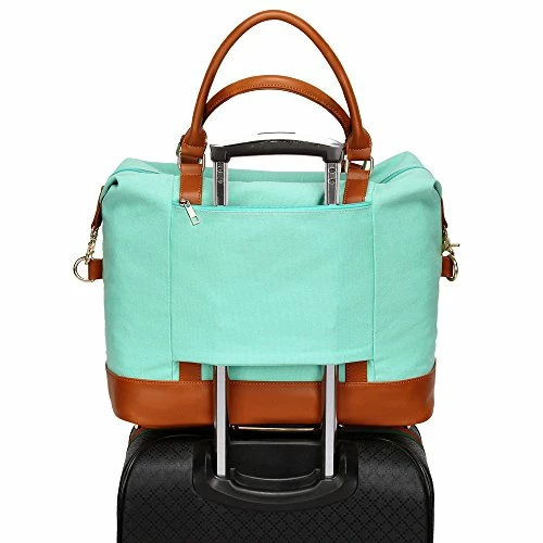 - Great size as small overnight bag, short journey bag, daily use shoulder bag, gym tote bag also as school bag, work bag, day trips. Back side sleeve allows you to slide it over rolling suitcase/luggage/roller bag handle.