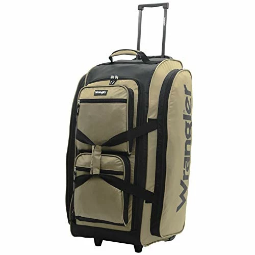 Details: Wrangler 30″ Upright wheeled rolling travel duffle bag with more packing space than luggage. Best use for long vacations and family trips.