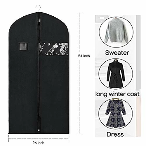 - Set of 3 (24″ x 54″ garment bags) These black travel garment bag for suits and dresses are great for business suits, dresses, winter coats, tuxedoes, fur coats, blouses, tops, slacks and many more. The sport coat storage bag offer helps keep off season clothing clean and wrinkle-free. Fits both Men’s and Women’s apparel.1-year warranty by Zilink.