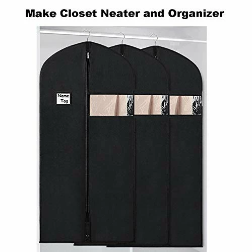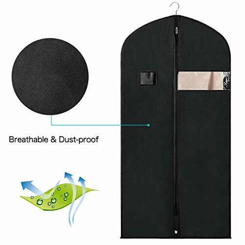 - Breathable Suit Protector Bags: These black garment bags for suits / dresses are made of high-quality breathable dust-free 100GSM Non-woven fabric. Protect your clothing from dust, making them great for storage and travel by plane, bus, car or train.
